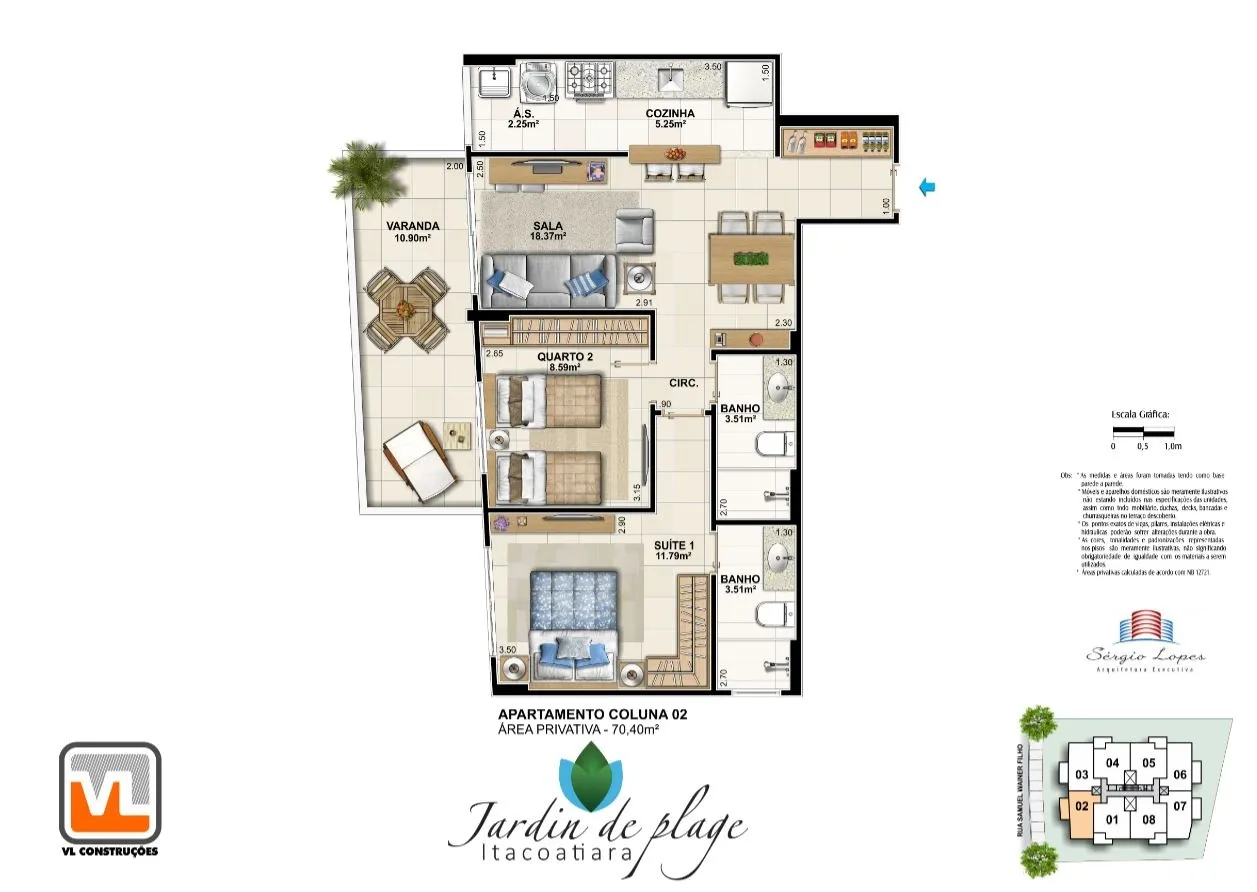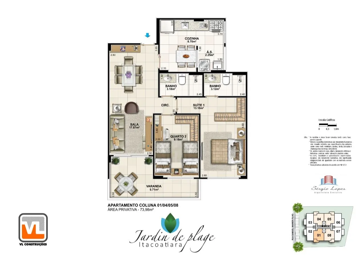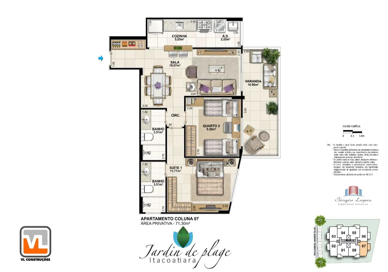 Apenas 24 unidades de 2 quartos com suíte e 3 coberturas lineares de 2 quartos.