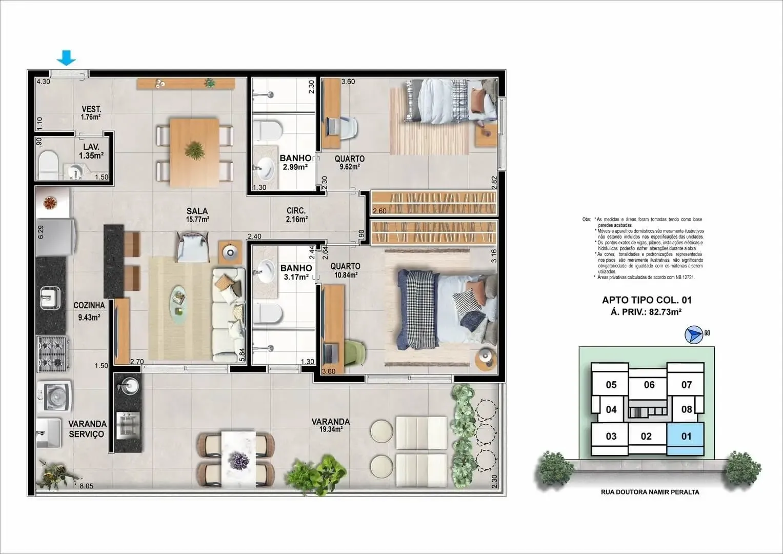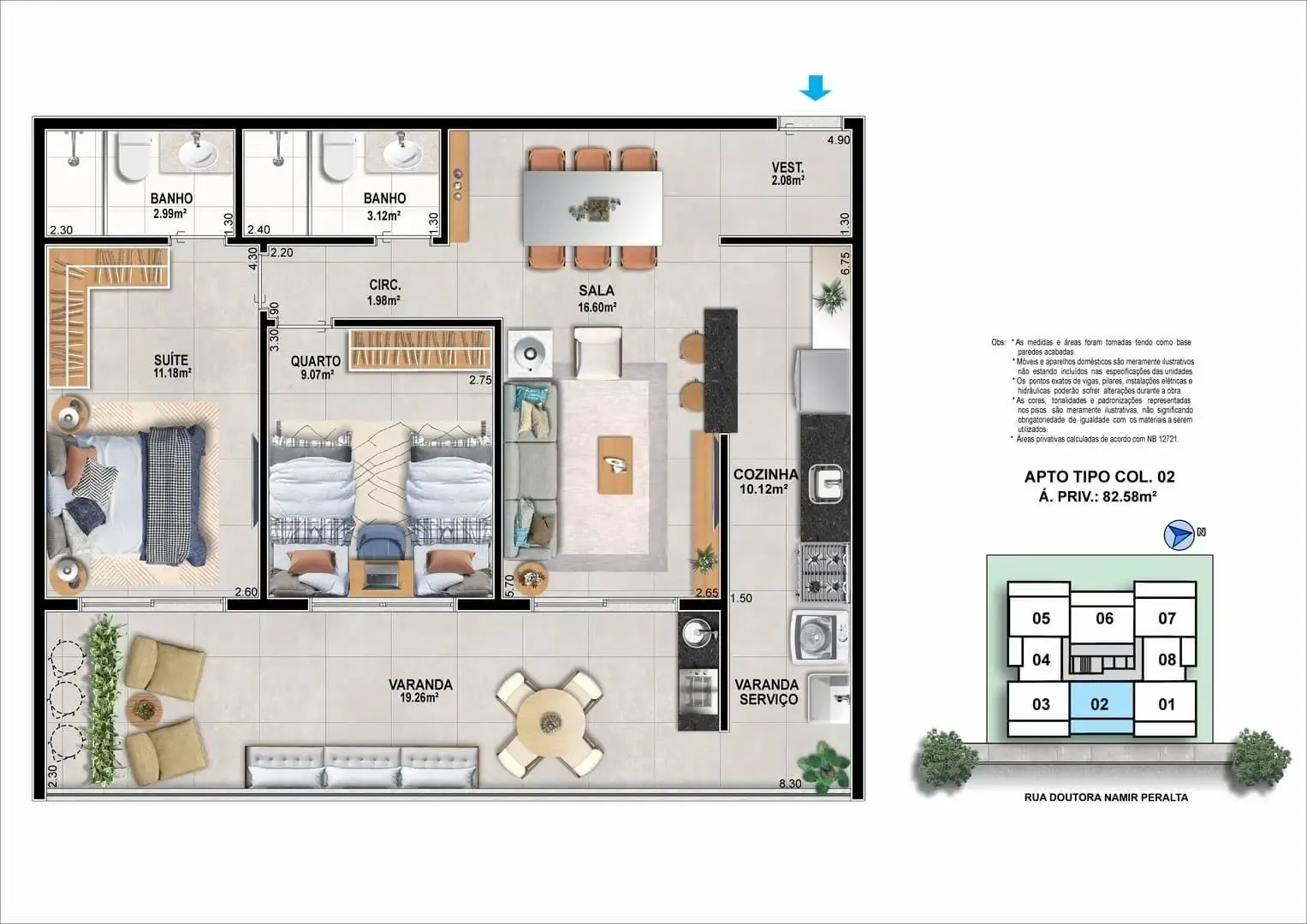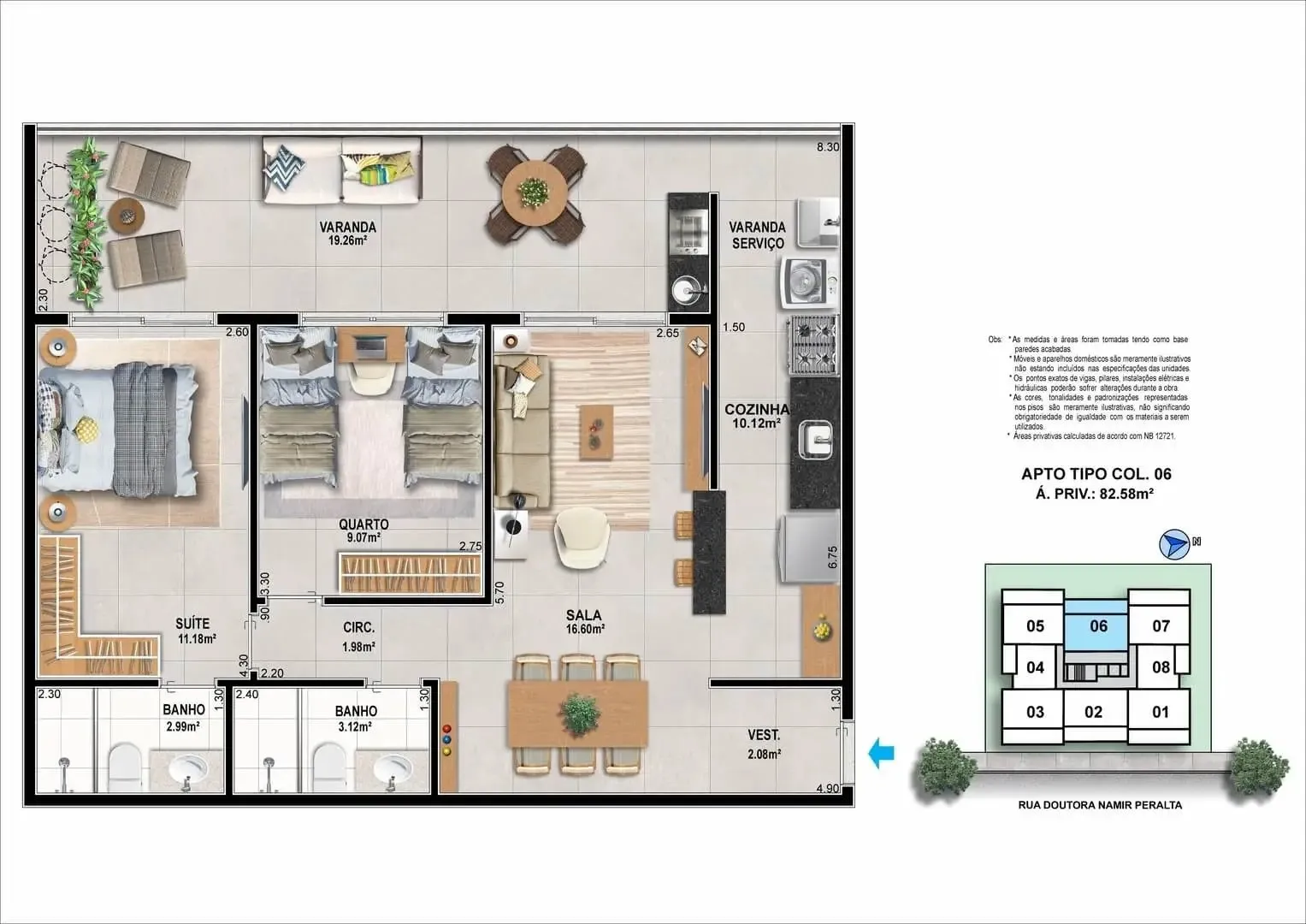 1 a 3 suítes