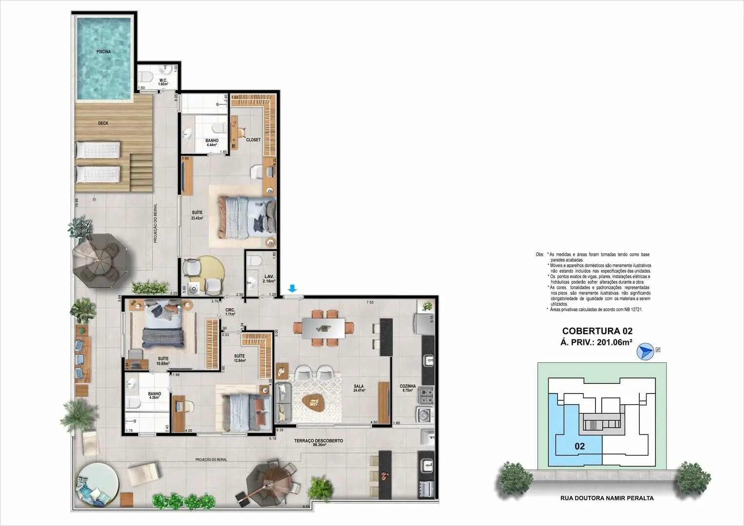 Coberturas com terraço privativo, piscina e churrasqueira completam o cenário ideal para viver com conforto, natureza e elegância todos os dias.