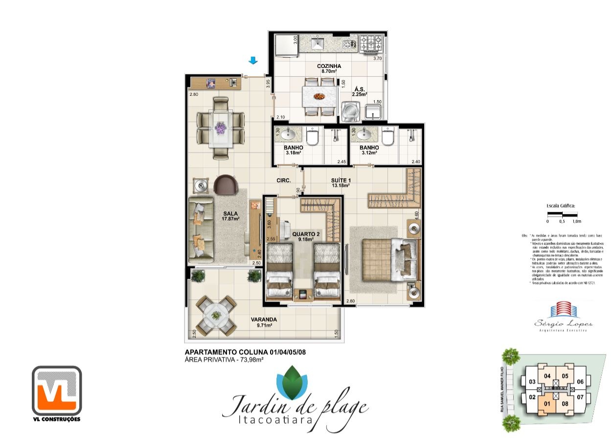 Apenas 24 unidades de 2 quartos com suíte e 3 coberturas lineares de 2 quartos.