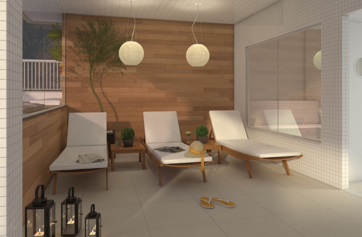 Sala com dois ambientes com varanda, suíte, garagem, Spa/Sauna, Terraço coberto e descoberto e Piscina.