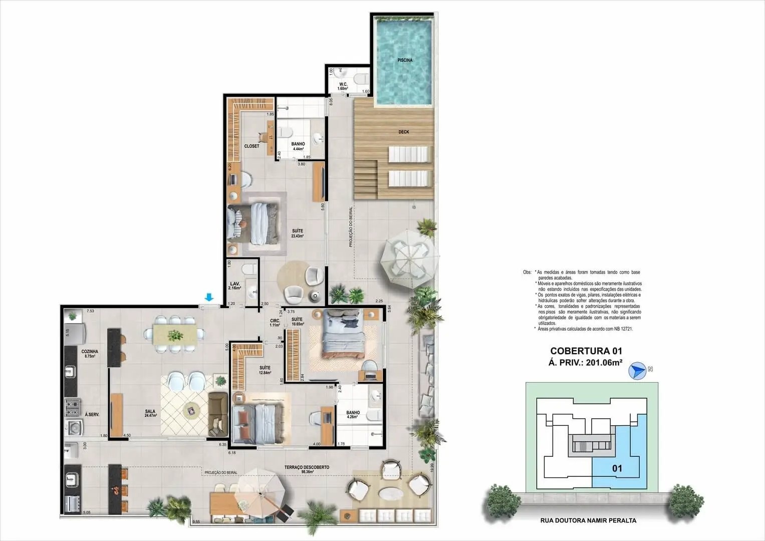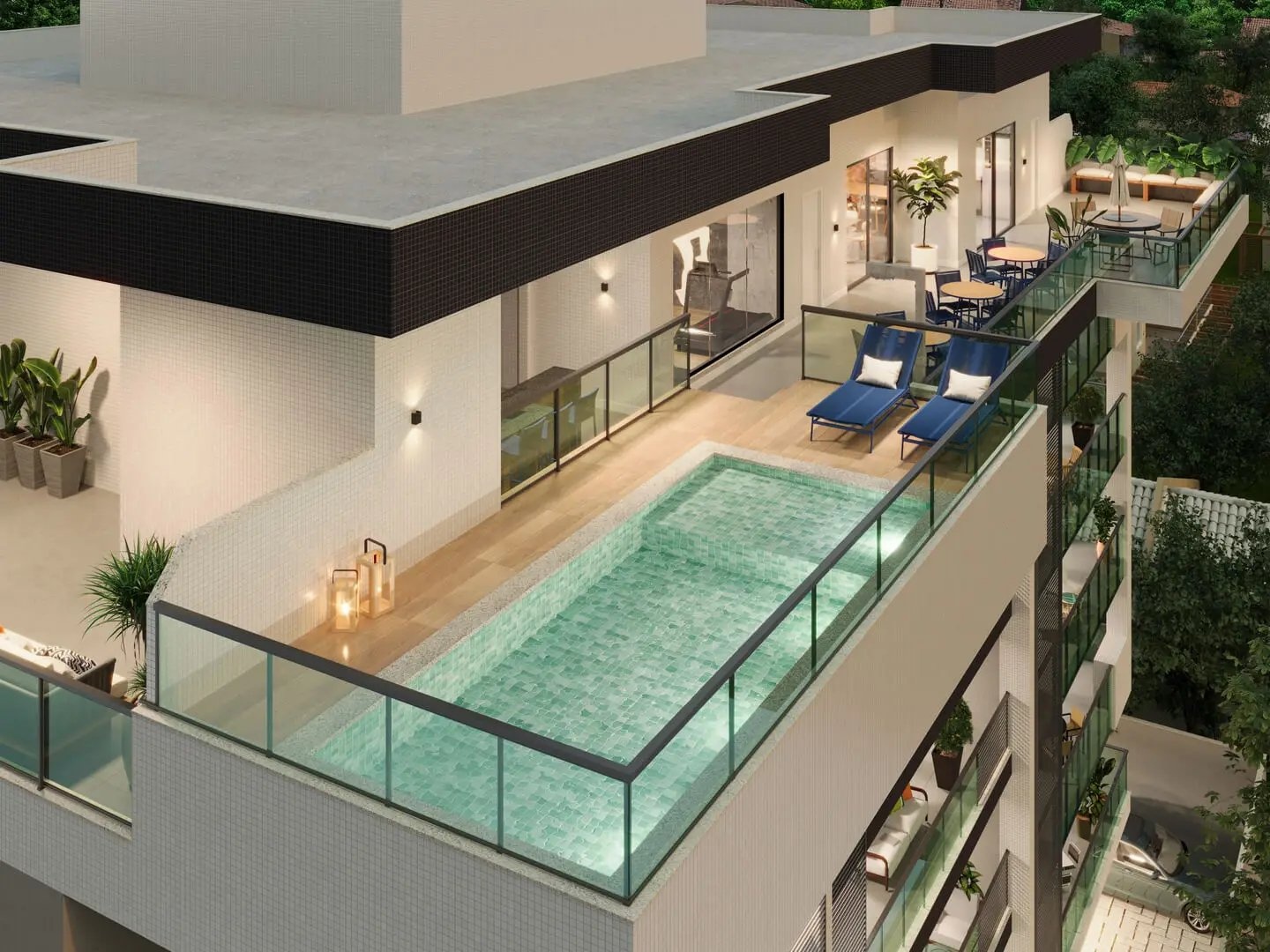 Coberturas com terraço privativo, piscina e churrasqueira completam o cenário ideal para viver com conforto, natureza e elegância todos os dias.